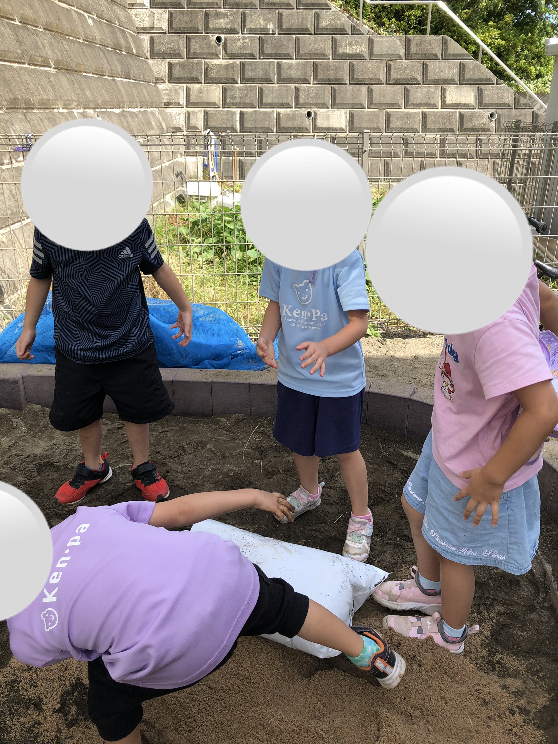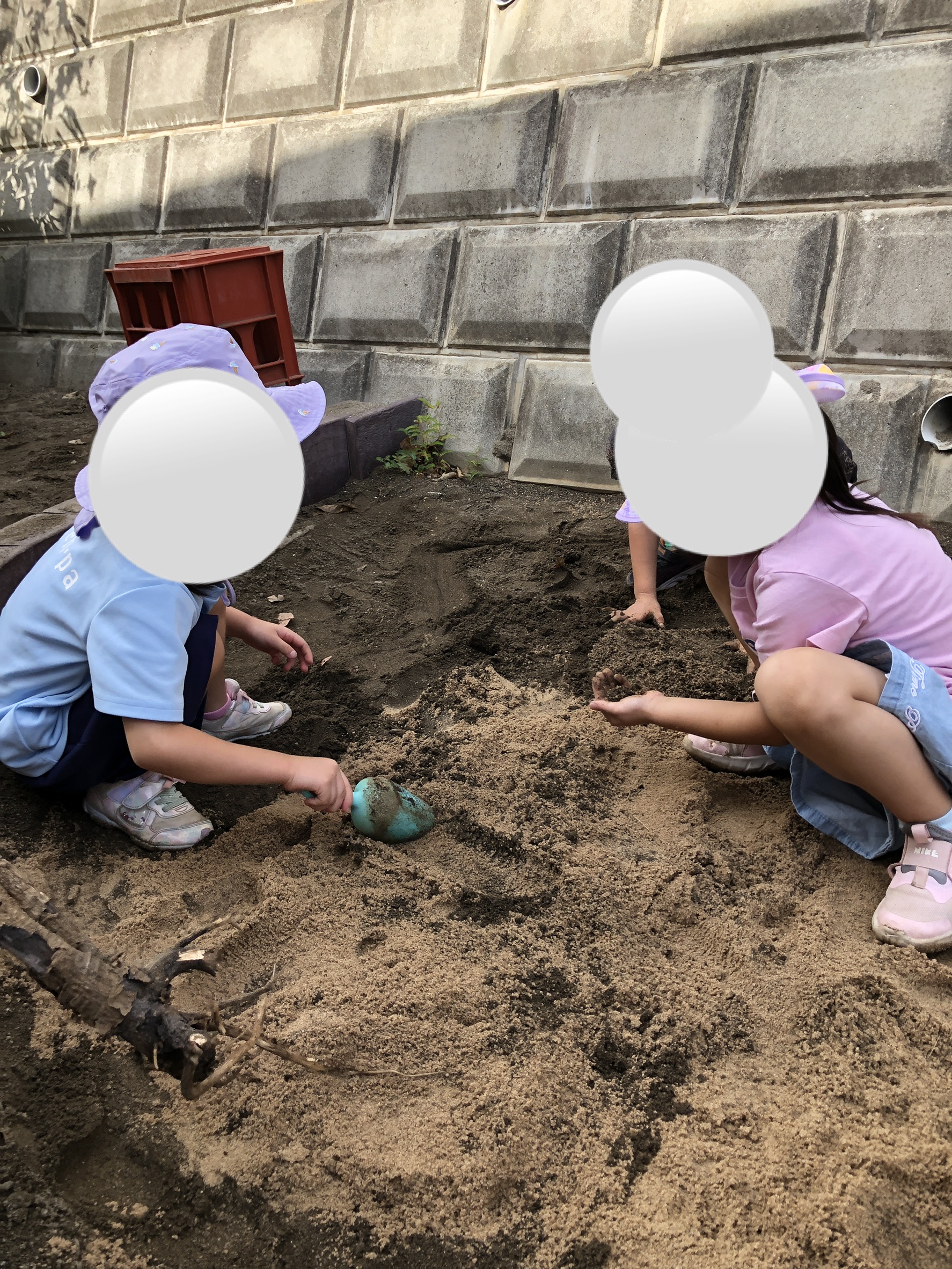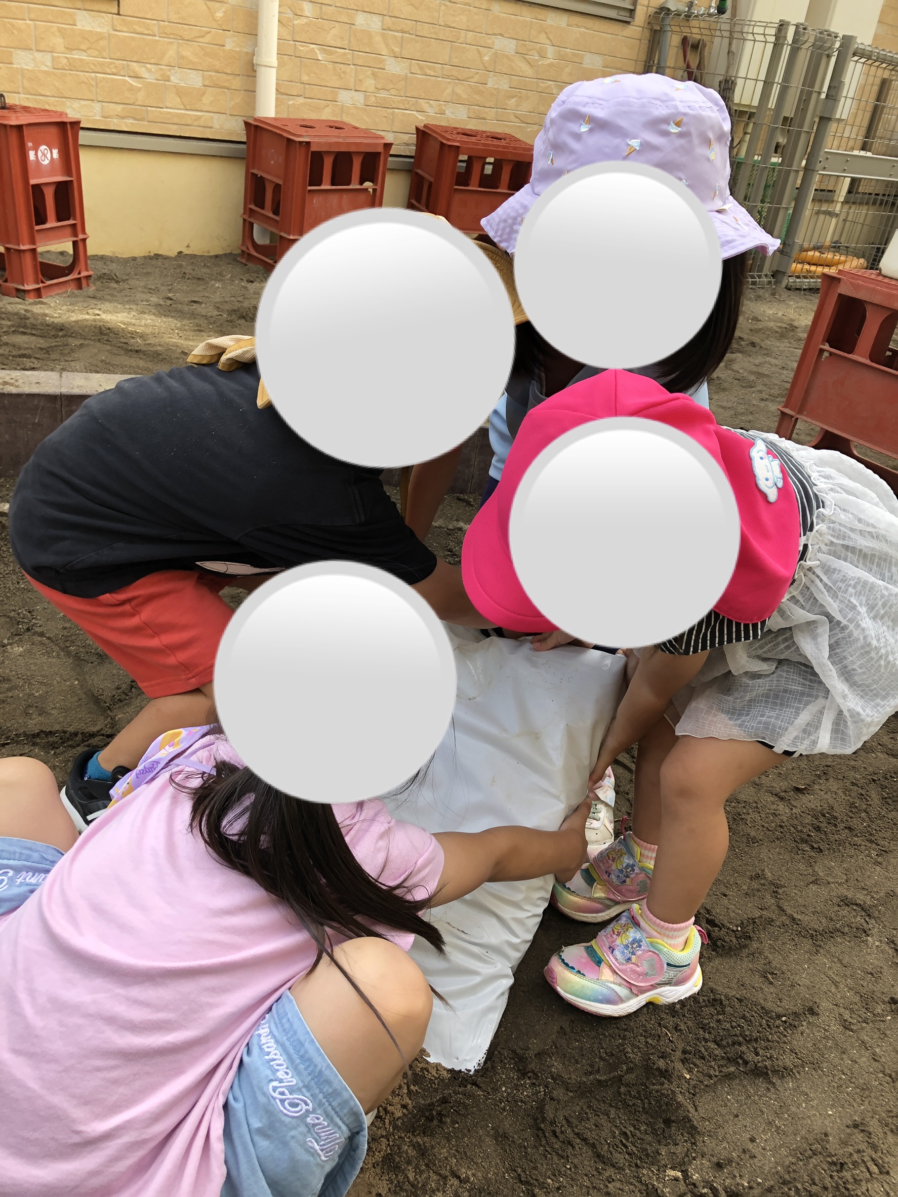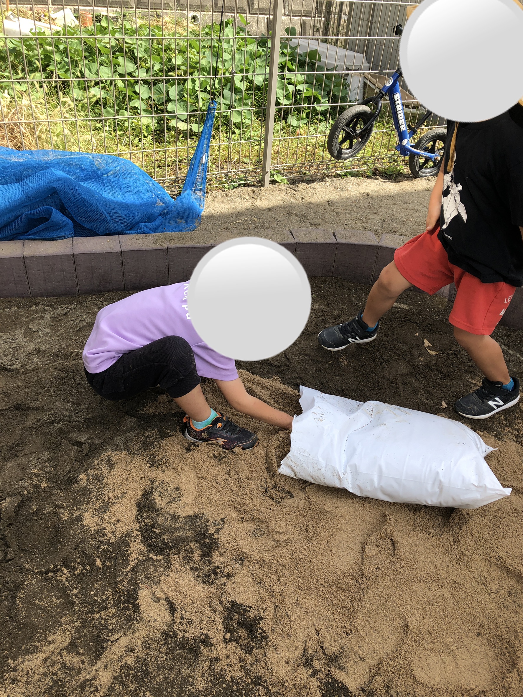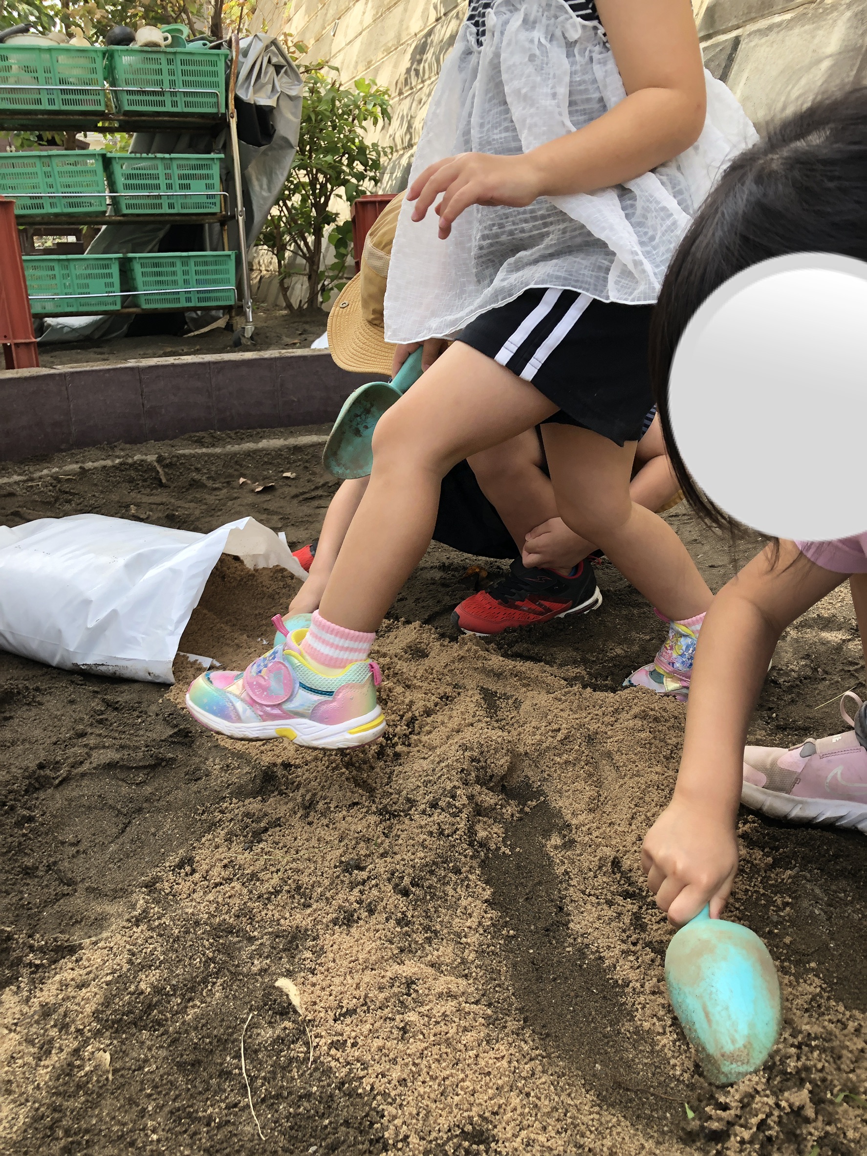 新しい砂を出す時に、園庭で遊んでいたGreenさん(4歳児)がお手伝いをしてくれました✨✨