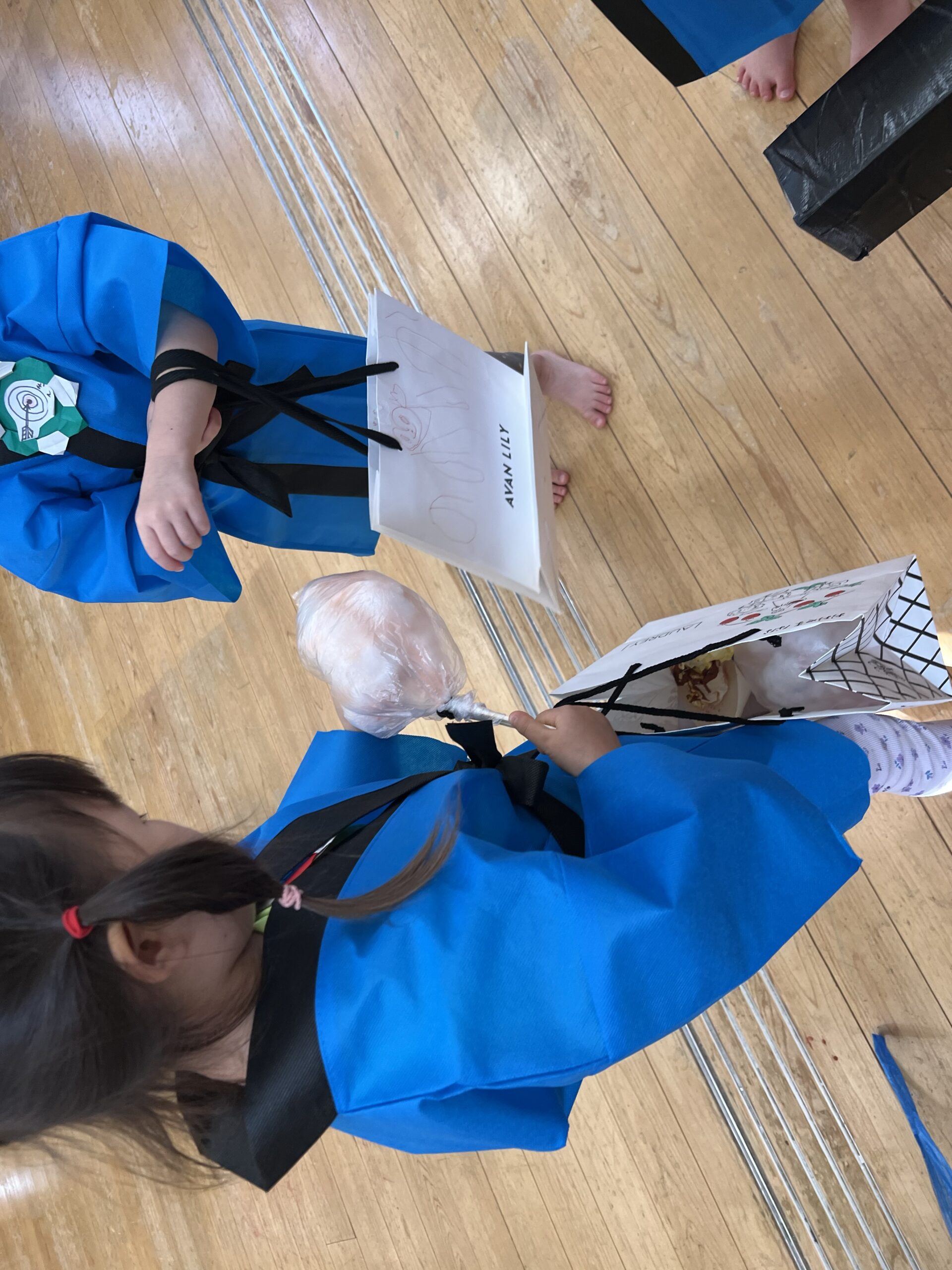 なるべく大きなものを渡したい子もいれば、彩り豊かのも渡す子もいました。とても友達思いや幼児さん✨