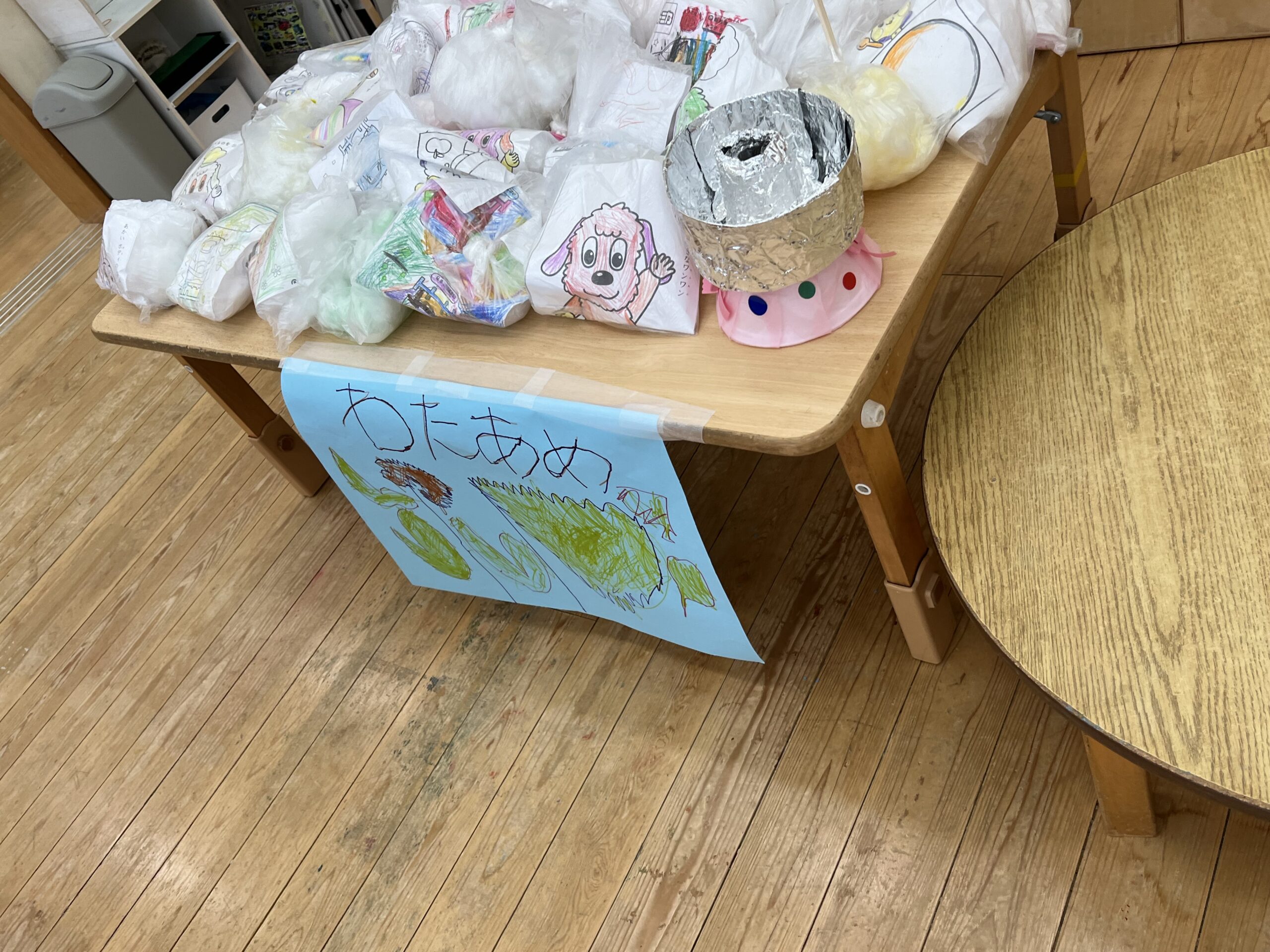 なるべく大きなものを渡したい子もいれば、彩り豊かのも渡す子もいました。とても友達思いや幼児さん✨