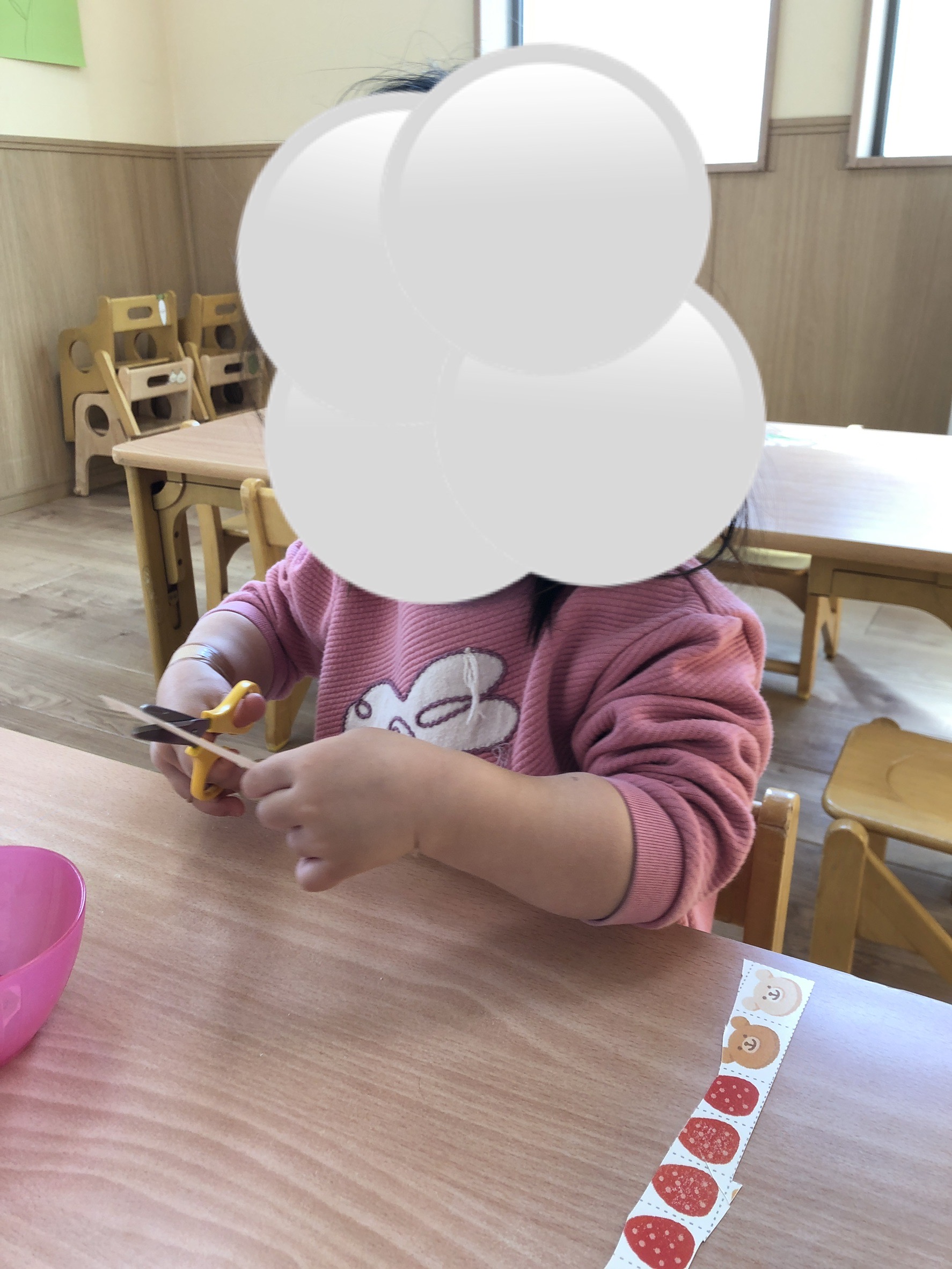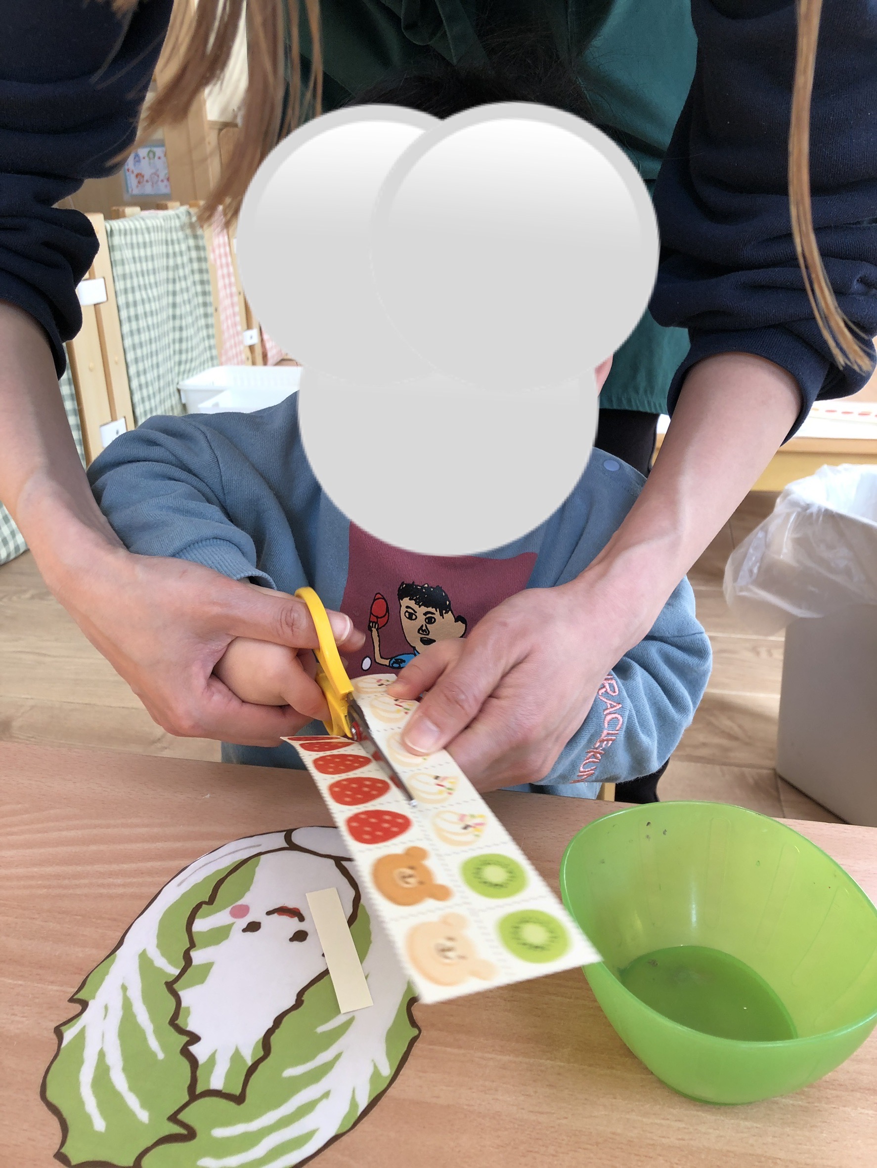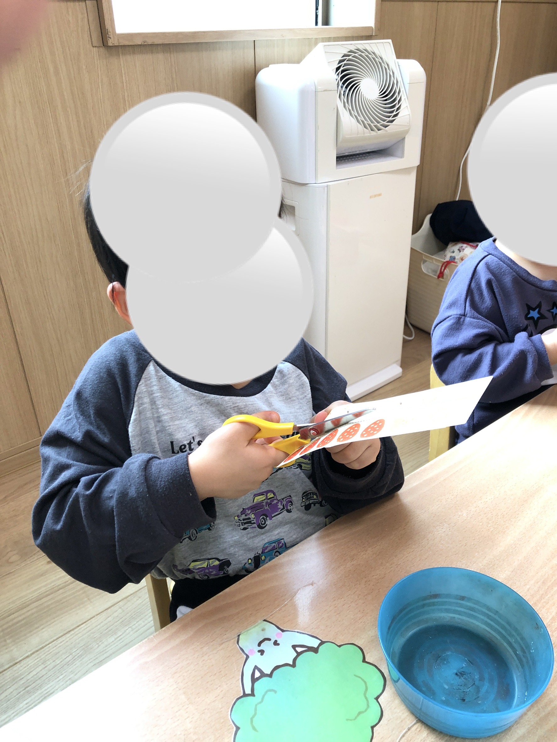 今週、Blue Bearsさん(2歳児)が初めてのはさみ練習をしました✂️
