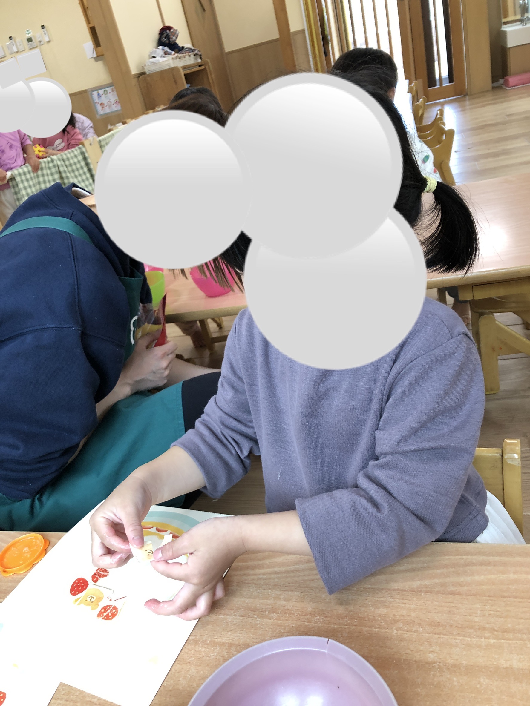 子どもたちは、初めてのはさみだったので、持ち方や切り方など難しい部分もありましたが頑張って挑戦してました!
