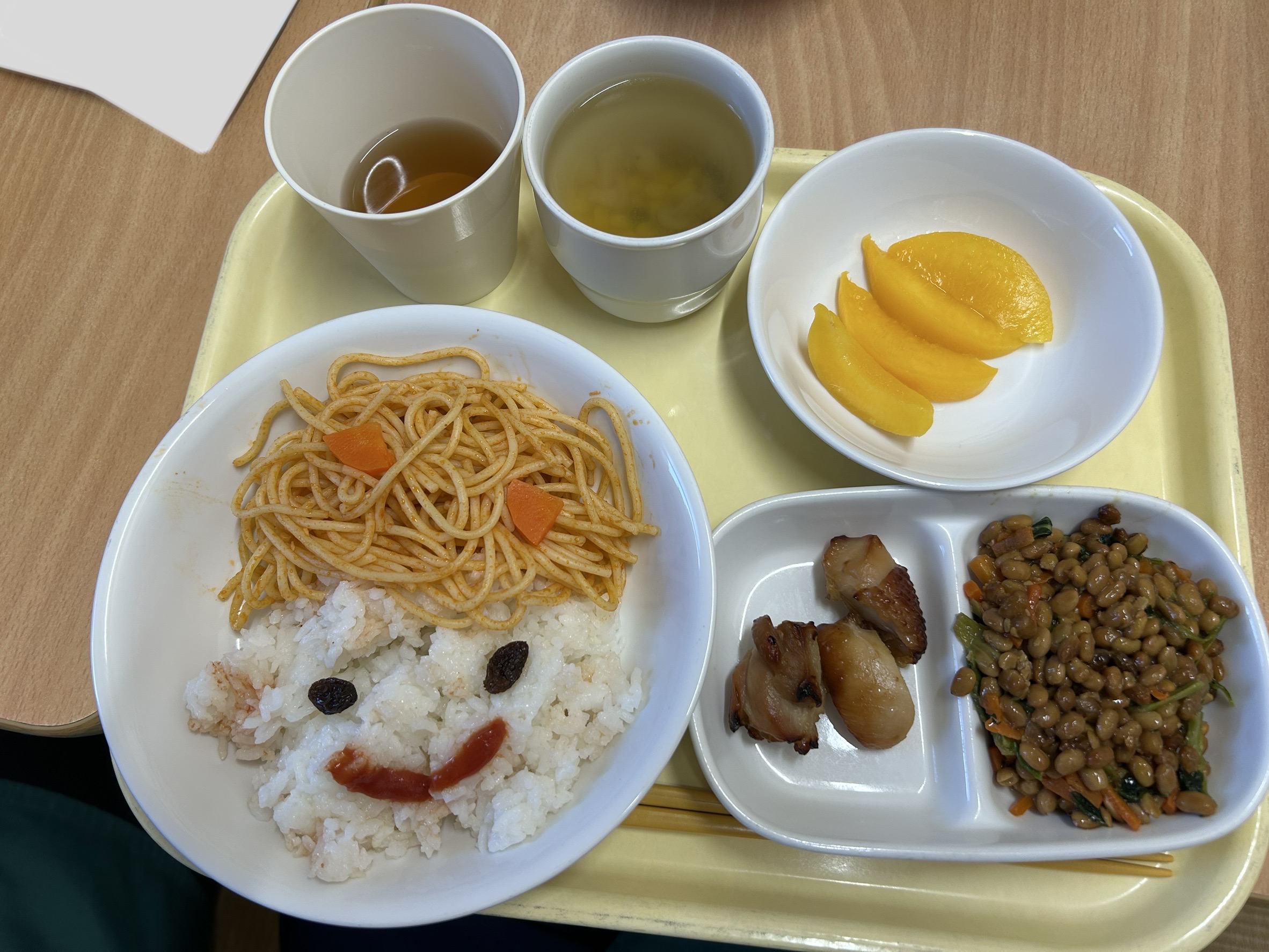 また、節分の日の給食は、「鬼さんパスタごはん」。子どもたちは、美味しそうに給食を食べてました✨