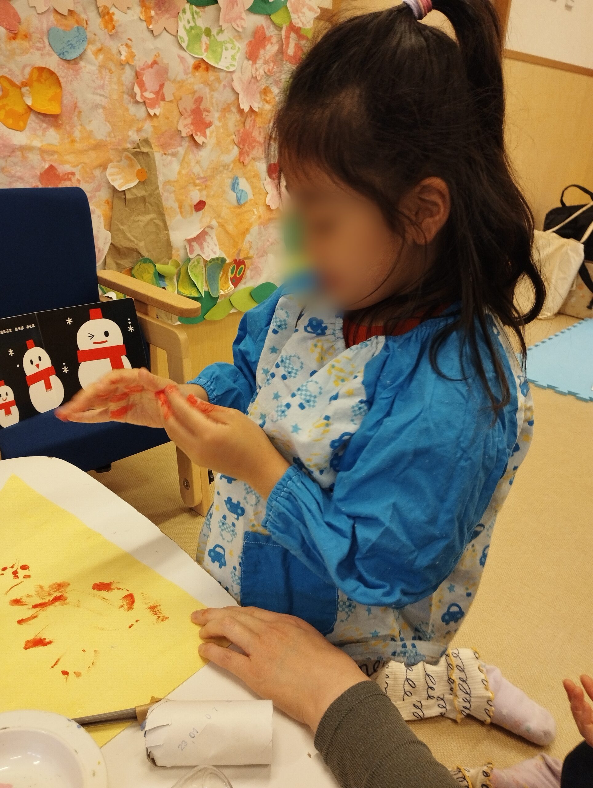 お手洗いを済ませて手を洗ったあとは、楽しみなおやつの時間です✨️